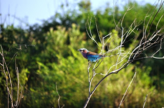 On my way back, I encountered a vain lilac-breasted roller possing on a bush.