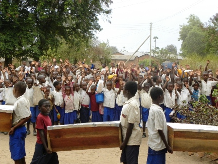 We finally received the bee boxes for Kakuni School, near Katavi National Park. The school will run their own bee keeping project with the honey going to the kids' porridge in the morning. This will save the school having to buy sugar, as well as meaning that any remaining honey can be sold by the school. The kids at the school were thrilled when the bee hives arrived!