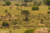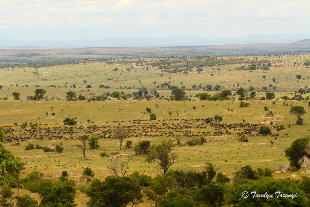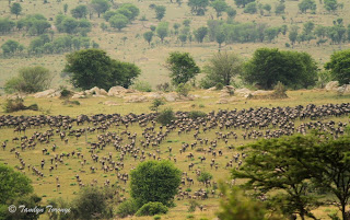 The last we saw from camp was of a giant herd of Wildebeest sweeping across the fields like a giant oil spill.