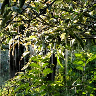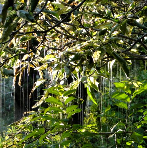 Magic silver silken strings are hanging from the wild frangipani trees all around Chada, shimmering in the sunlight. Alliteration gone wild, I know, but only because it is beautiful beyond my ability to capture photographically.