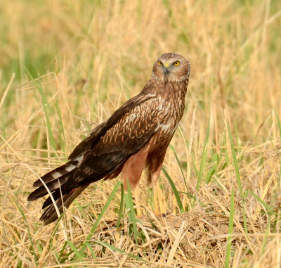 More often seen on the wing, the African marsh harrier is a graceful, low-flying hunter over the plains.