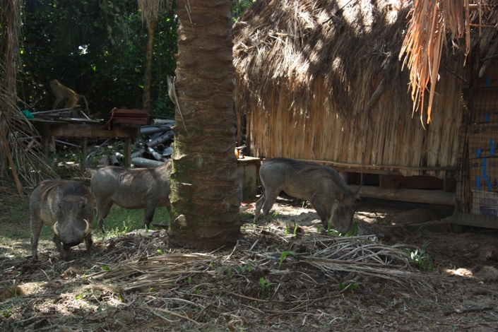Our friendly family of Warthogs have been around camp lately. The babies are nearly as big as mum now, minus her impressive tusks. They actually moved into camp when we were away and slept under the store room. If you look closely you can see their hollow under the building.