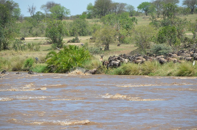 The northern Serengeti honestly is at its very best right now. Continuous heavy rainfall has turned the whole northern Serengeti into a bright green haven for game. Although food is plentiful for all animals, the rainfall poses other challenges. The Mara river is so swollen that many wildebeests face huge challenges crossing it, many of them not making it to the other side.
