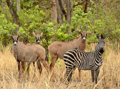 Minutes later, more roan, with a lone female zebra...what a nice sighting for us.