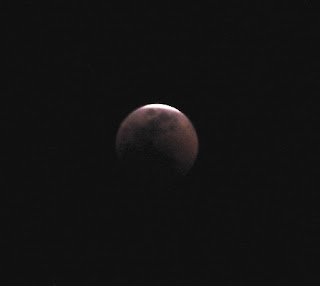 At 9:20, the moon was almost too bright to look at, but the edge of the earth's shadow was just beginning to creep across.