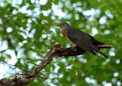 ...more often heard than seen, this Red-chested Cuckoo inflates it's throat to call, "It will rain!"