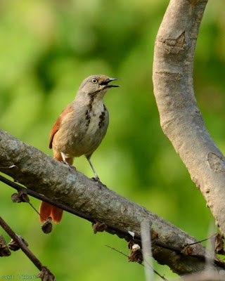 ...and skulking in the undergrowth, an elusive Collared Palm Thrush sings a tune...