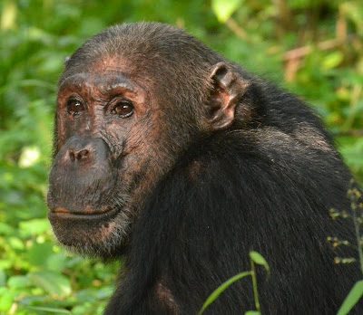 Even Alofu showed up to eat from the tree beside Room 5, then sauntered into the forest and sat in the perfect patch of sunlight, just before sunset. The joke of the day was how tired people were after a morning with chimps high on the forested hills, only to have another excellent sighting right under our noses later on.