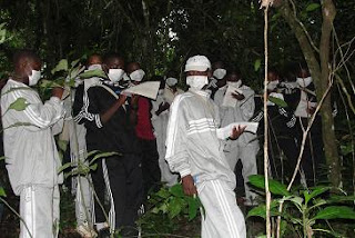 The students heading off into the forest.